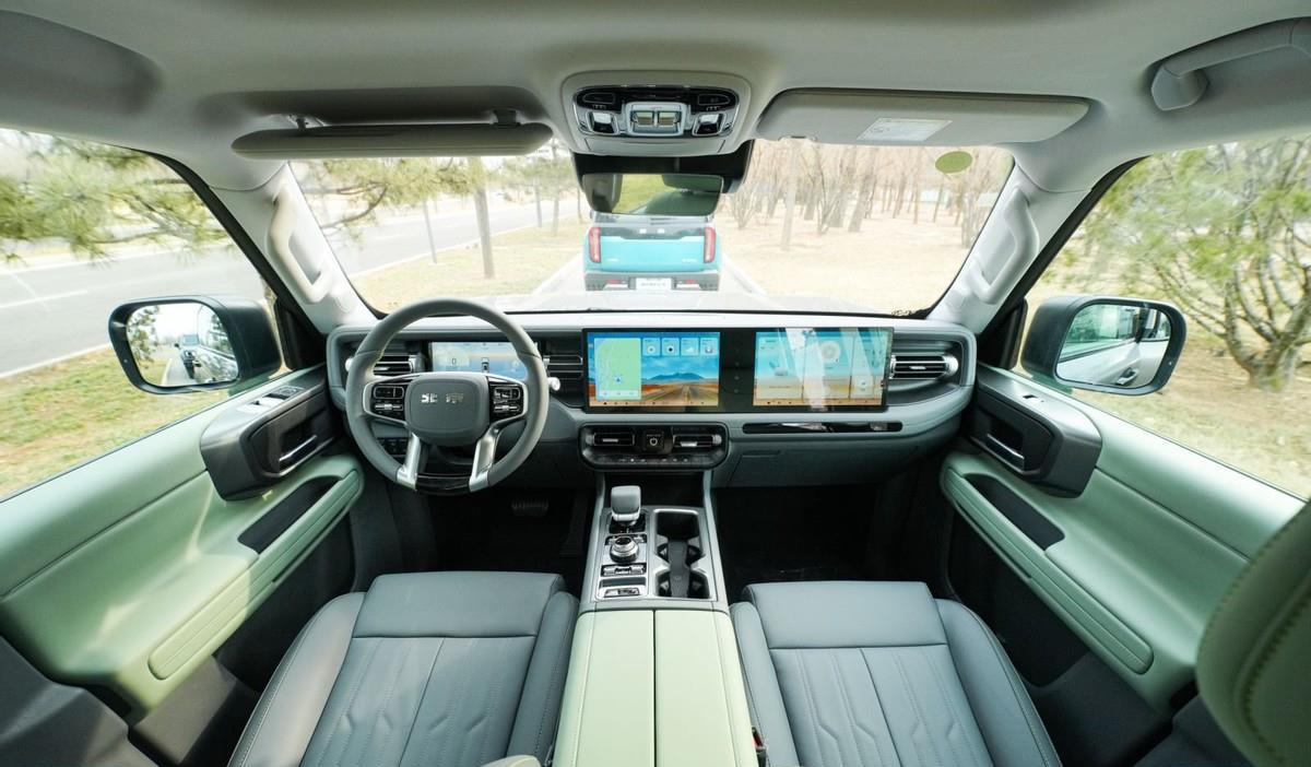 在舒适和实用配置方面,BJ40燃油同样兼顾新手的用车需求,打破了硬派越野车“粗狂、简陋”的固有印象。双12.8英寸悬浮双联屏支持信息互通,搭配7nm高通骁龙8155旗舰芯片,操作流畅无卡顿,导航、娱乐等功能一键可达,新手也能轻松操作。