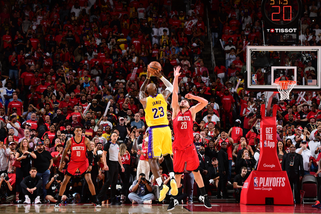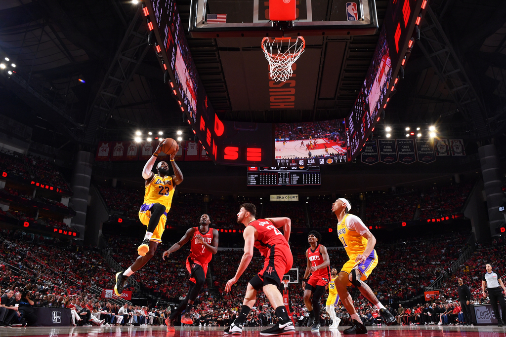 比赛进行到上半场时,场上曾出现这样一幕:湖人前锋勒布朗·詹姆斯身穿23号球衣,持球突破,在火箭中锋阿尔佩伦·申京的防守下直杀篮下。这一回合也成为双方身体对抗和比赛强度的缩影。